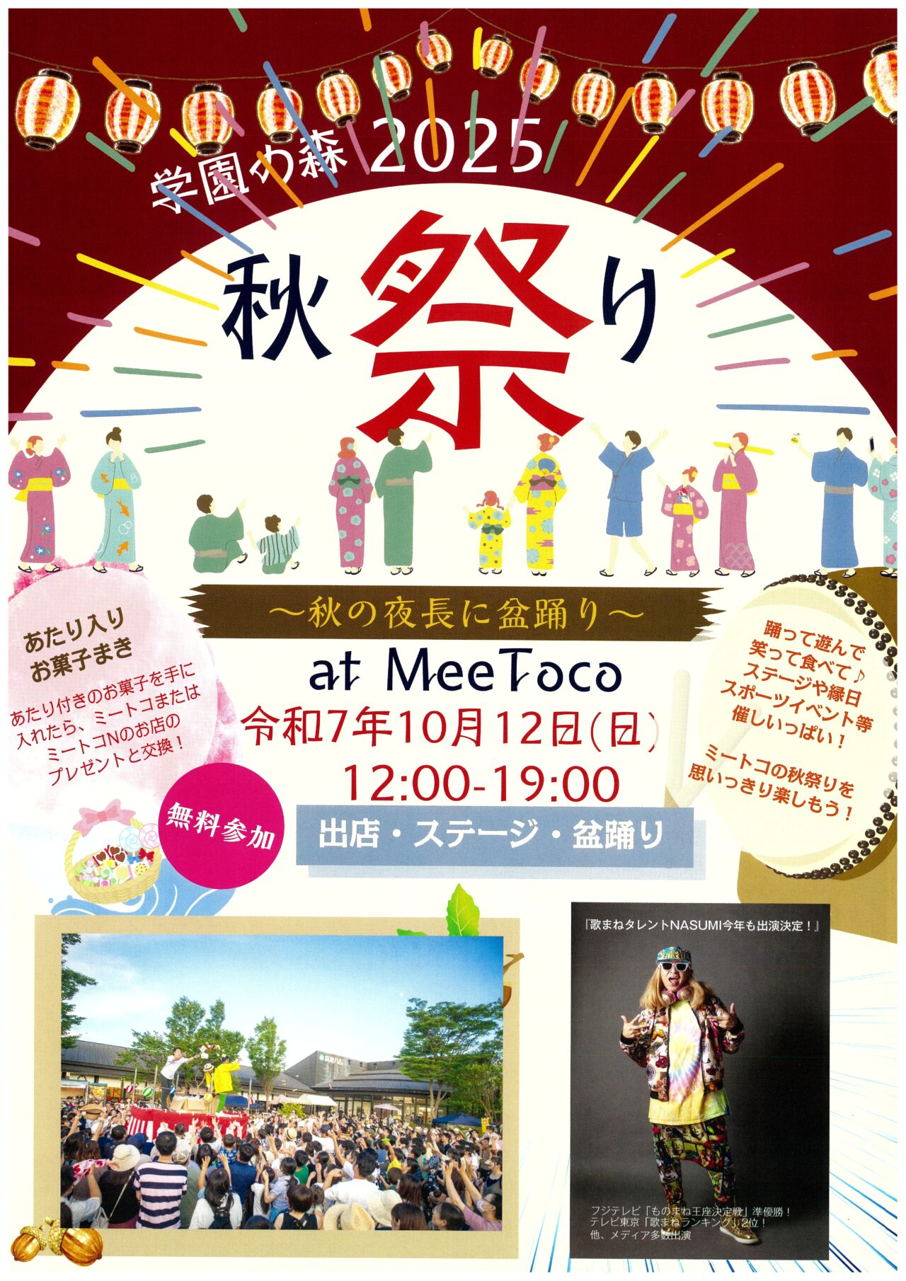 2025年10月12日(日)、「学園の森 秋祭り2025 at MeeToco」が開催されます!