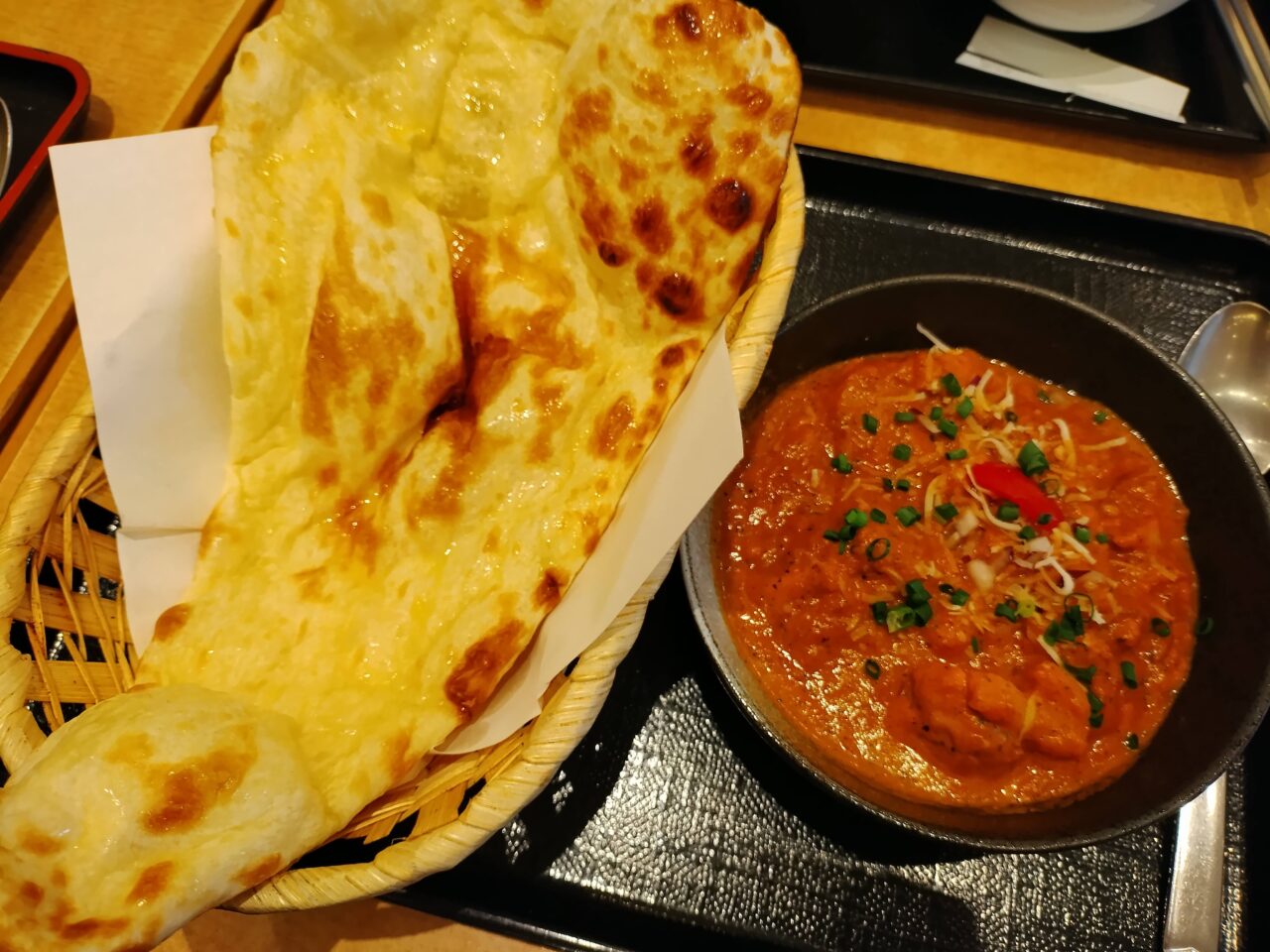 チキンとカリフラワーのインドカレーのほうも、ナンが大きくて満足度が高いです。