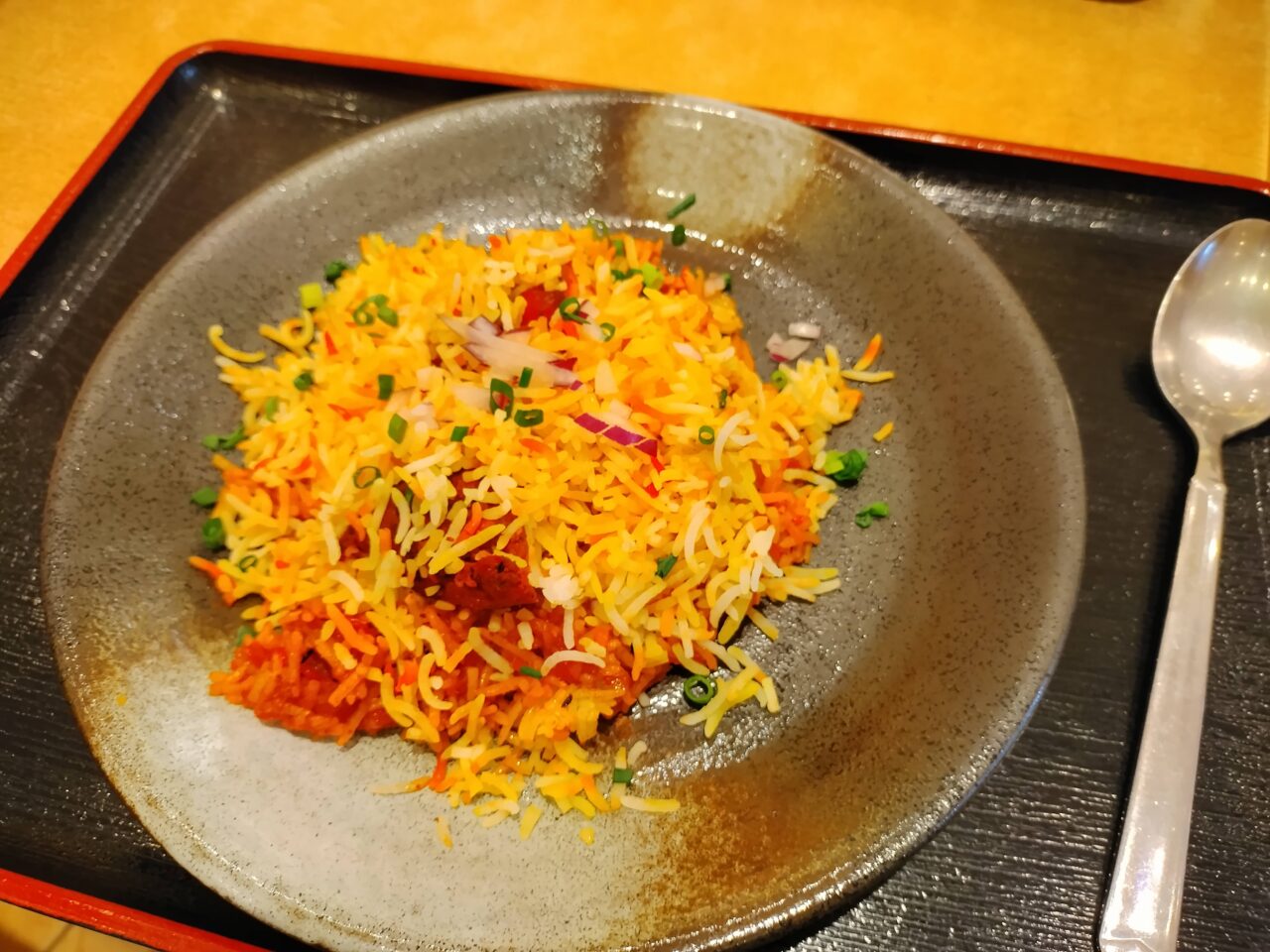 まずはビリヤニから。スパイスたっぷりの本格的な味わいで本当においしい!