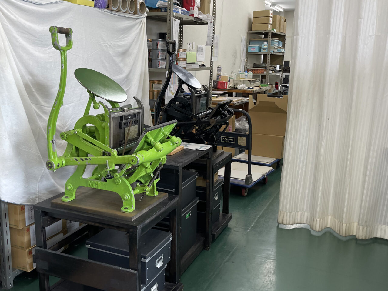 レトロな雰囲気でとってもかっこいい印刷機です。普段はなかなか見ることができませんので、要チェックですよ!