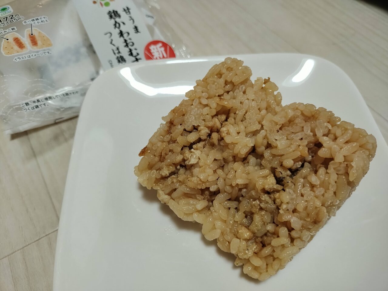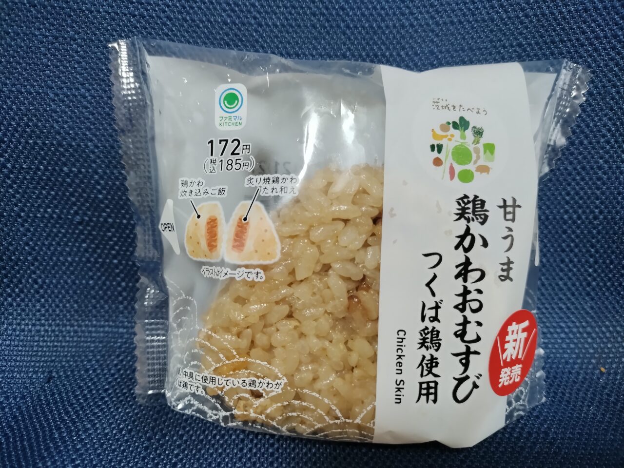 こちらは、10月21日より発売した「鶏かわおむすび(税込185円)」。銘柄鶏「つくば鶏」を使用したおにぎりです。