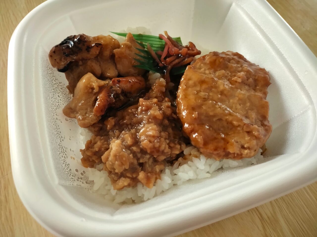 つくば鶏を使用した「甘辛たれのつくば鶏丼(598円)」は、鶏そぼろ、鶏つくね、鶏むね肉の3種類が楽しめます。甘じょっぱい味付けが病みつきになる丼です。