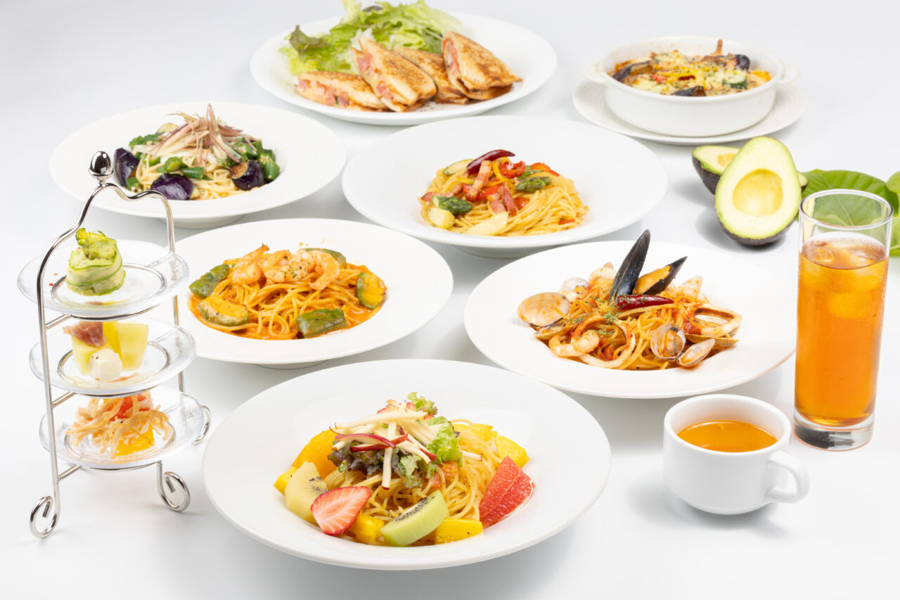 新メニューとして登場した「フルーツオードブルセット」。パスタ、ドリア、サンドから選べるメインに、フルーツオードブル(カプレーゼやマリネなど3皿)、飲み放題のフルーツスープ、ドリンクがセットになっています。こちらもとてもおいしそうですね!