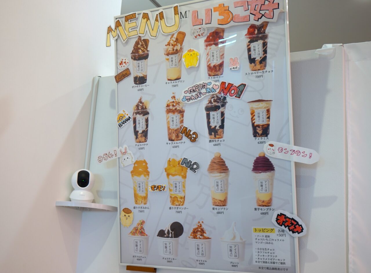現在(2025年12月下旬)は「びっくりするほど美味しい大きなりんご飴」をコンセプトにした「びっくりんご」と、11月8日のオープン時から販売されている夜パフェ専門店「アイスは別腹」のパフェが発売されています。
