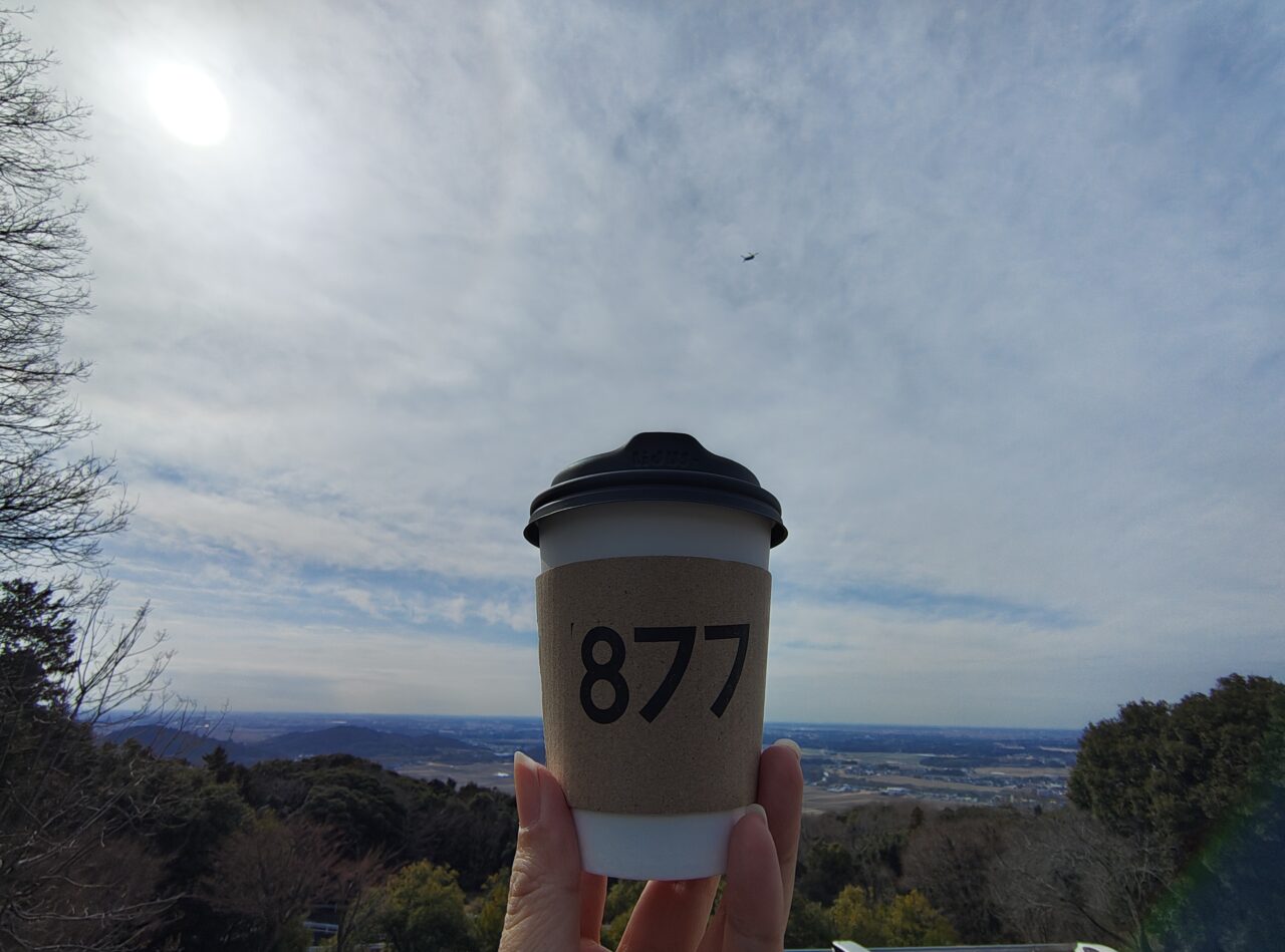 筆者は、眼下に広がる関東平野を望みながらテイクアウトしたアメリカーノをいただきました。コーヒーはスッキリしたクリアな味わいで、散策して疲れた体にしみわたります。
