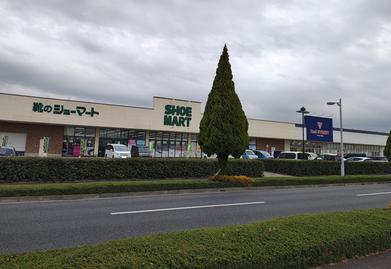 看板が出ていたのは、シューマート つくば研究学園店やセカンドストリートつくば研究学園店の道を挟んで反対側です。
