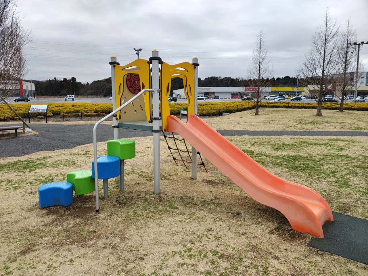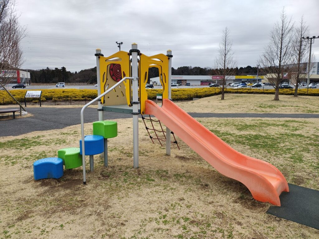 遊具はすべり台がひとつだけですが、小さな子どもと軽く遊ぶには最適な場所です。