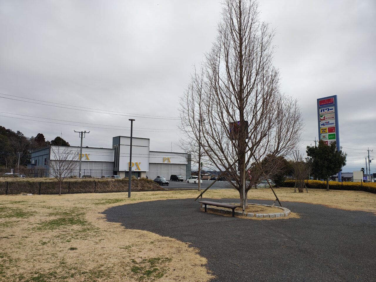 さくらの杜ショッピングセンターのすぐ裏手にある「上境旭台貝塚(かみざかいあさひだいかいづか)公園」。見通しがよい、小さな公園です。