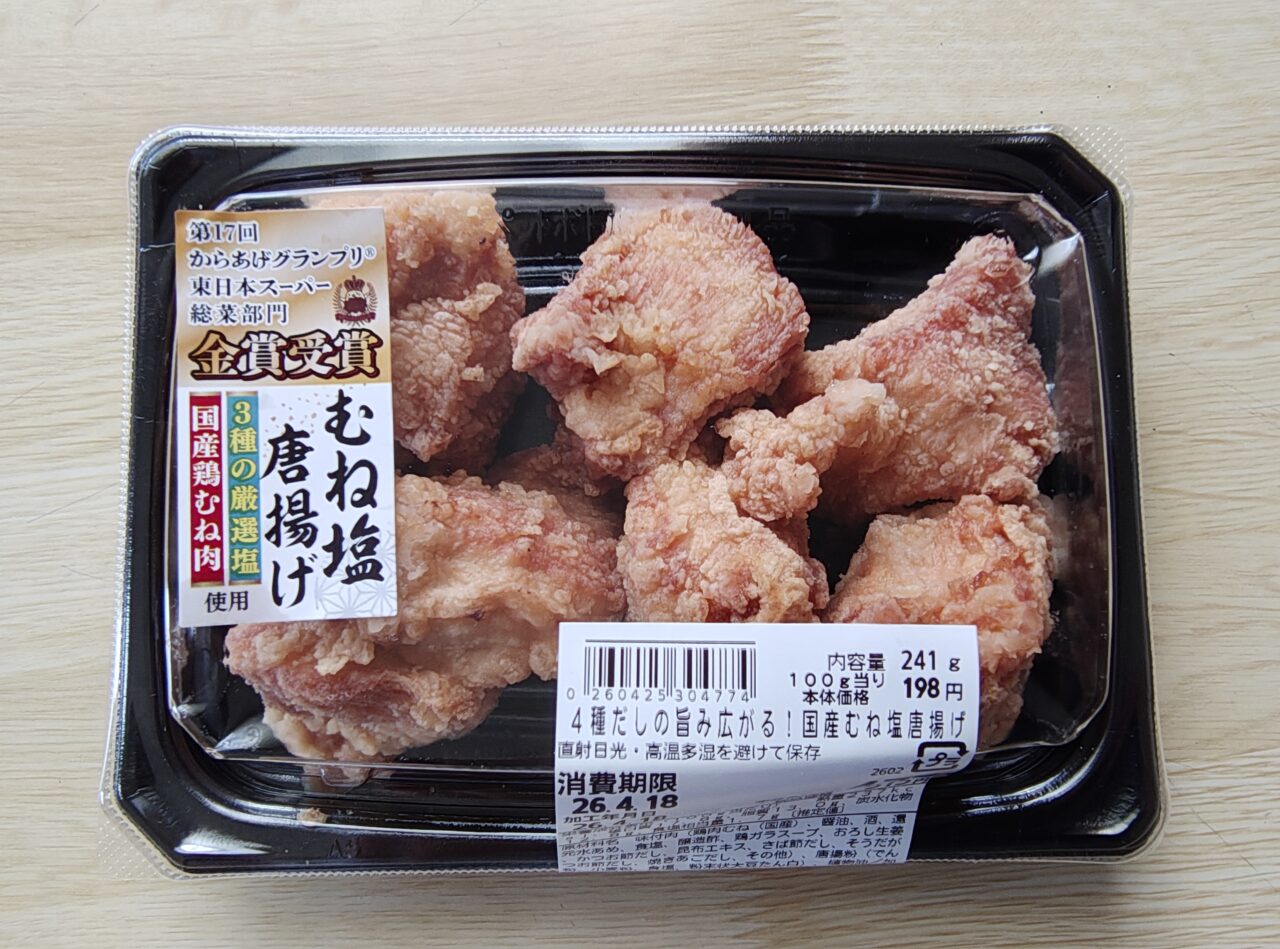 カスミで2026年3月より販売されている「4種だしの旨み広がる!国産むね塩唐揚げ」。この度、一般社団法人日本唐揚協会主催の「第17回からあげグランプリ®」の東日本スーパー惣菜部門で 、なんと「金賞」を受賞したのだとか!