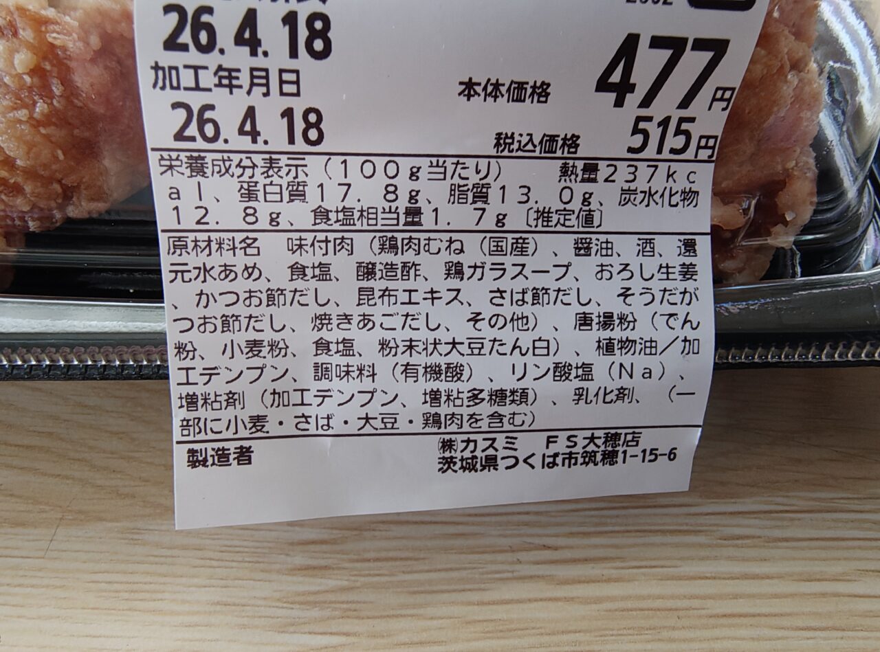筆者が「4種だしの旨み広がる!国産むね塩唐揚げ」を購入したカスミフードスクエア 大穂店はこちら↓