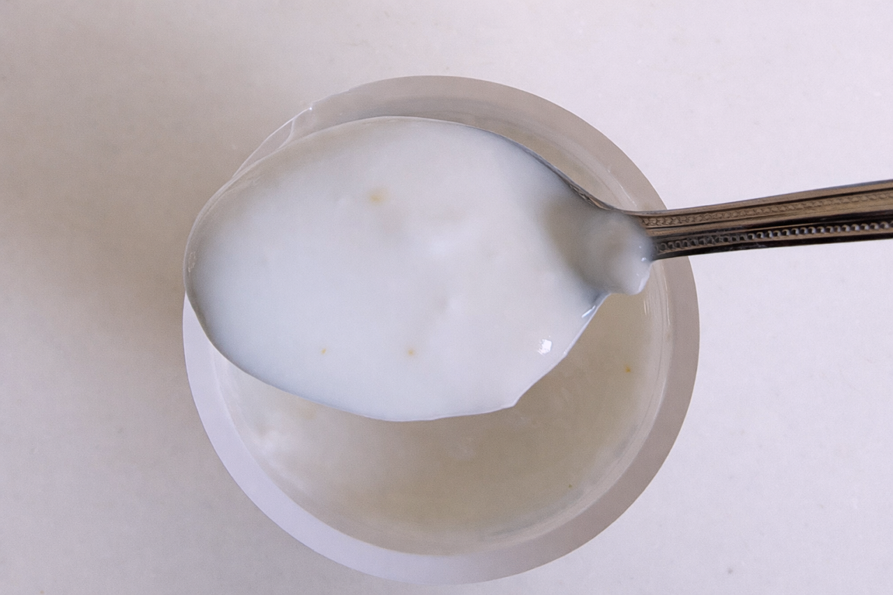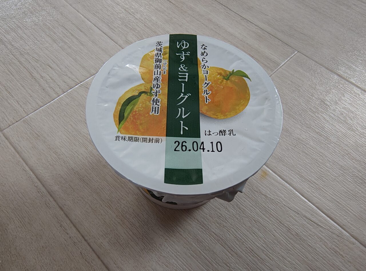 まずはこちらの「ゆず&ヨーグルト(税込213円)」から。ヨーグルトの中にゆず果皮が見えます。茨城県御前山(ごぜんやま)産ゆずを使用しているそうです。
