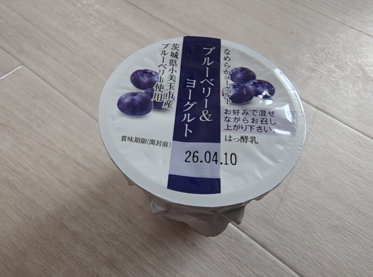 続いて「ブルーベリー&ヨーグルト(税込213円)」。小美玉市産ブルーベリーを使用したヨーグルトで、カップの底にブルーベリーが入っています。
